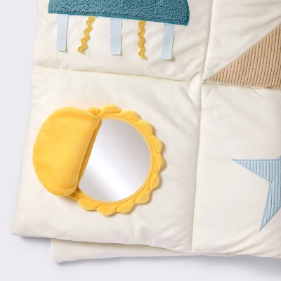 Give your little one a fun space to play with the Geometric Interactive Playmat from Cloud Island™. This interactive playmat features a quilted pattern with geometric pattern shapes such as sun, clouds, rainbow, and more to attract them. Made of polyester fabric, this washable playmat is easy to clean. Add it to your collection or gift it to a little one in your family.