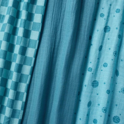 Your little bundle of joy will be all cozied up in their nursery with this 3-Pack Muslin Swaddle Baby Blanket from Cloud Island™. This pack includes three muslin blankets — one in a solid hue, another with sports print and the third with a checkered pattern. Made from 100% cotton muslin fabric, these swaddle blankets feel soft against their skin and help them stay warm while feeding, during stroller rides and beyond.